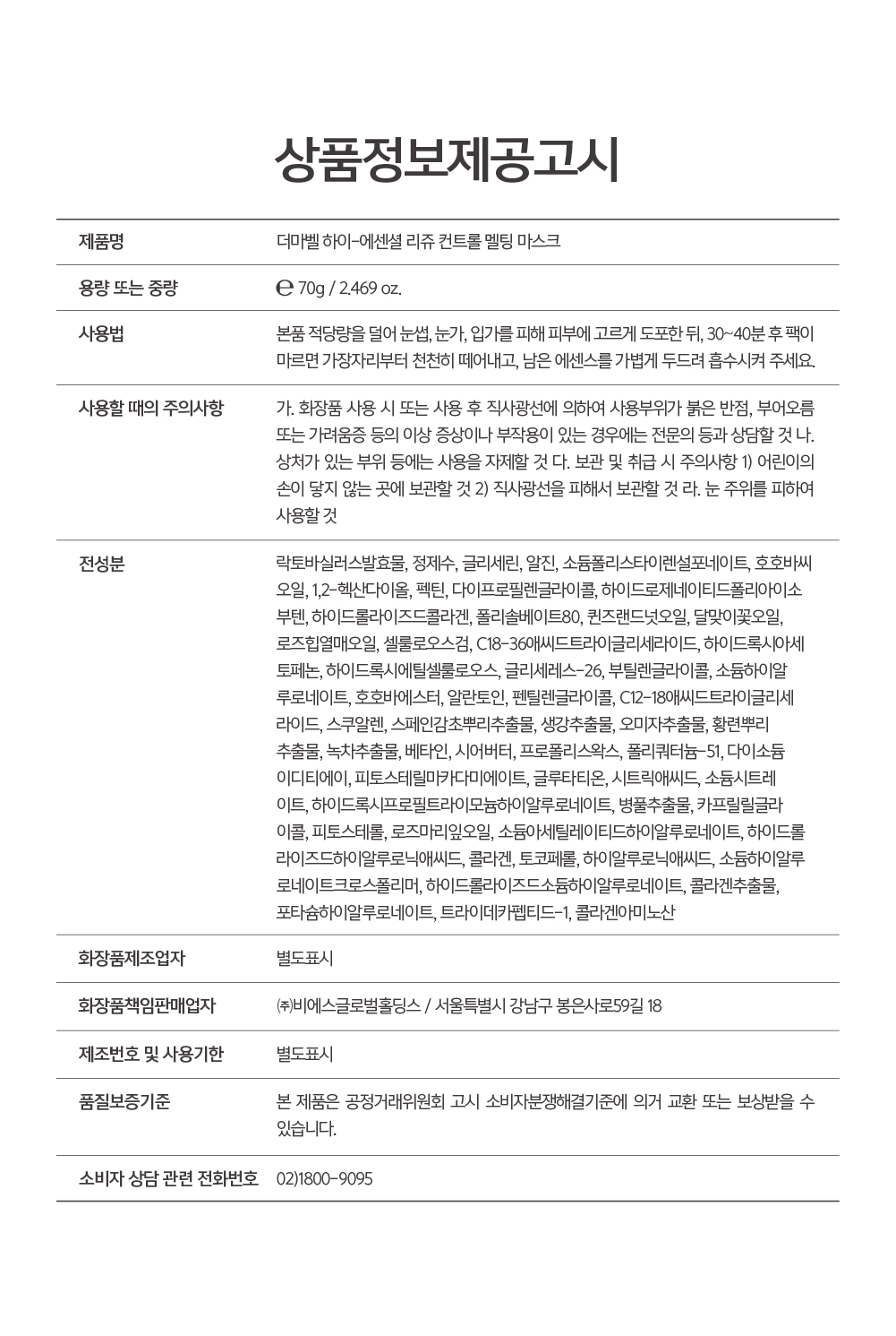 (소비자 상담실:02-1800-9095)